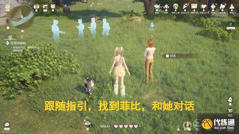 我们传送到“河畔山地林间道”锚点,点击追踪任务,跟随指引,找到菲比,和她对话,接取任务;