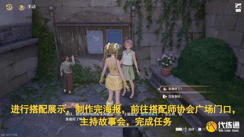 接着,跟随指引,找到玛娜,和她对话,请她帮忙制作海报,进行搭配展示;在4-22点(白天),在搭配师协会广场上主持故事会;
