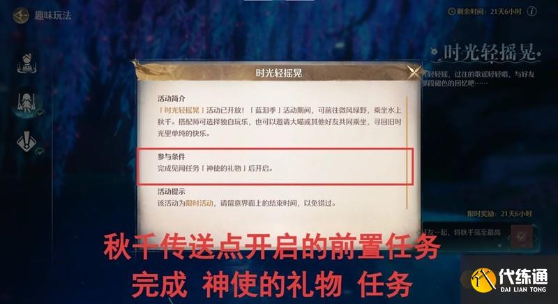 秋千传送点开启需要完成支线任务:神使的礼物