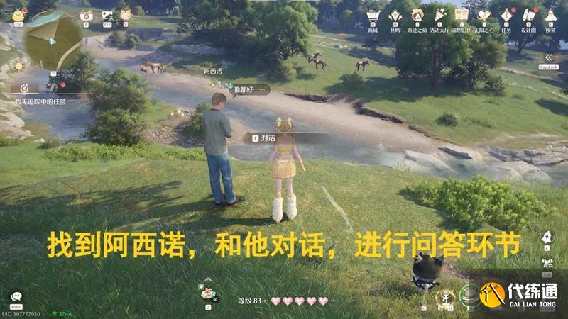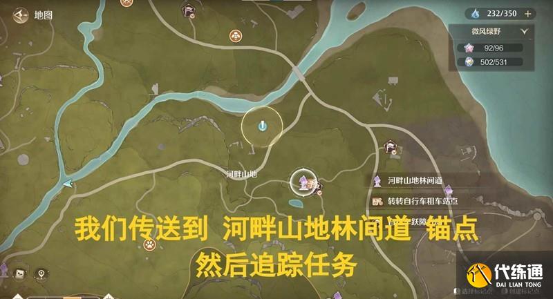 我们先传送至“河畔山地林间道”锚点,点击追踪任务,找到阿西诺,和他对话,接取任务;