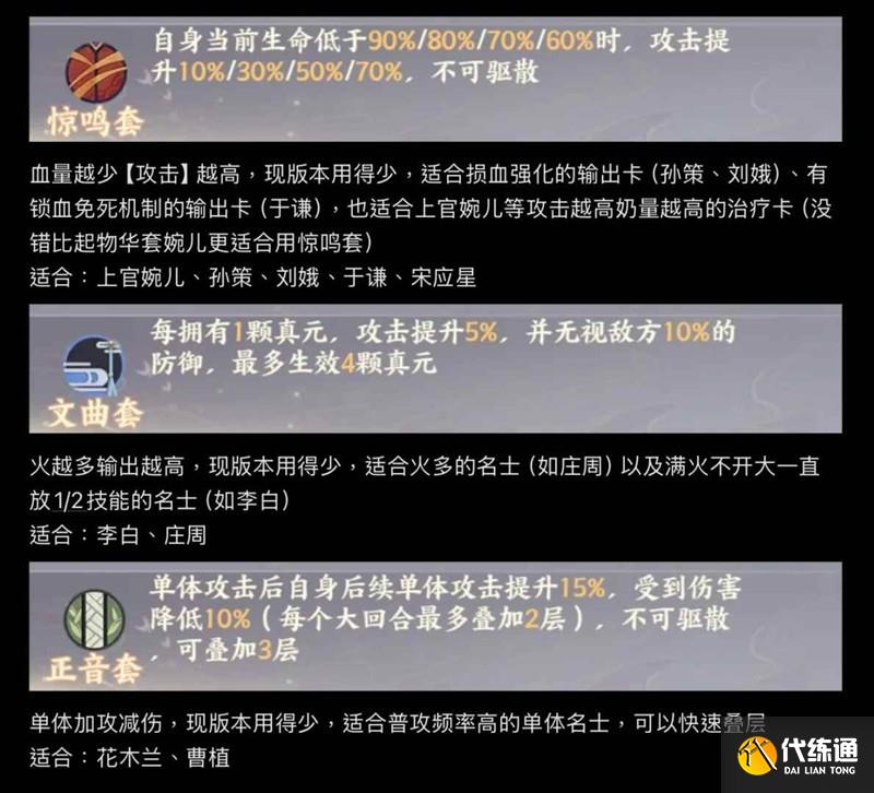 给新手宝宝的宝墟套介绍以及每套装备适合什么名士(但不一定是该名士最适合的装备,现版本很多名士最适合的装备是幽墟套,宝墟套很多时候只是新手过渡。宝墟套中新手必洗毕业的两套:踏破、捭阖,其他都可以准备一套绝品20级红装不洗,用着即可,后期再按需要来洗)