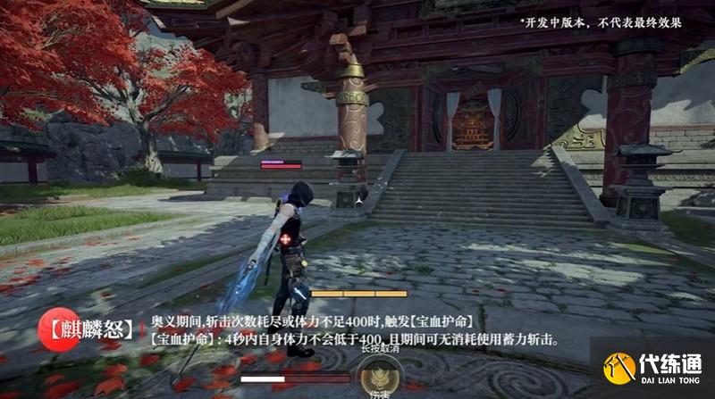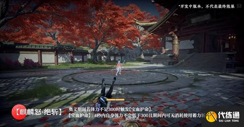 【怒意绝斩】:向准星方向高速冲刺斩击,短时间后出现记忆灵体,灵体会沿冲刺轨迹再次发动斩击,奥义期间体力不足300时触发【宝血护命】