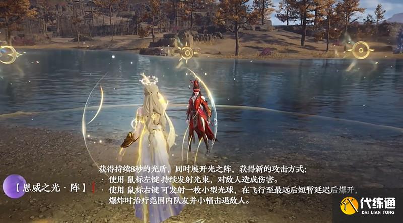恩威之光?阵则是一个团队增益技能,在8秒内为范围内队友提供治疗和50%减伤效果,是团战中的关键保命技能。