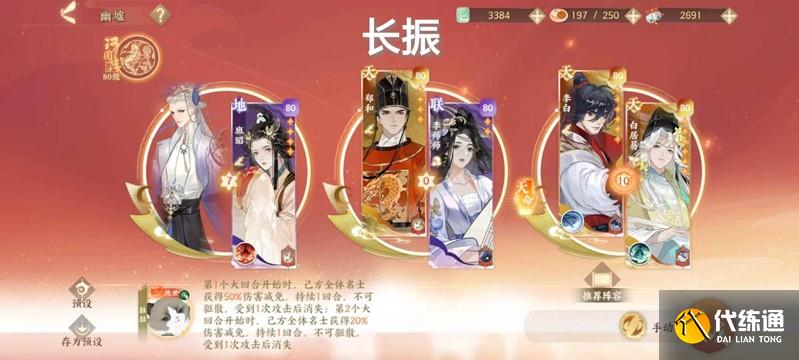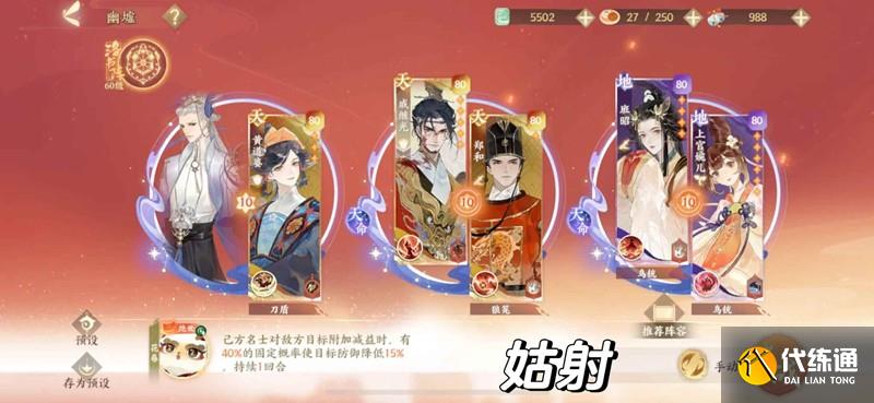主力:白居易(重蕴承佑套)、李白(重蕴文曲套)、郑和(仅重蕴一些防御输出词条的姑射套)、班昭(未重蕴20级姑射套)