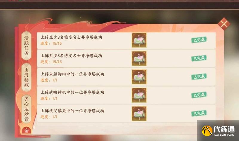 2:任务完成只看结算关(如果没打过15五条命就全没了是按照你失败结算的那层的配置看的,比如你带了三个品茗的打到14层死光了那任务完成那一栏就会显示14/15)所以如果剩的命多可以优先打到14关再考虑任务配置。