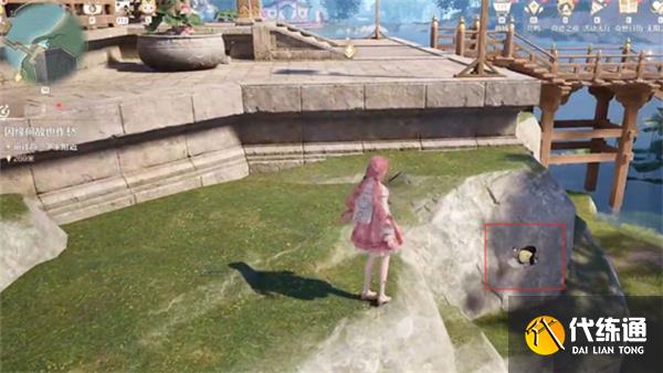 3、沿路径前进,到达崖壁位置即可看到一个隐藏的史丢丢。