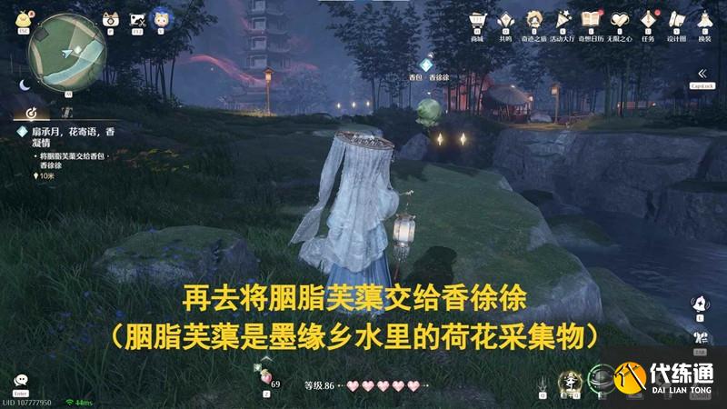 然后我们将胭脂芙蕖交给香徐徐;(胭脂芙蕖就是墨缘乡里水面上的荷花采集物)之后,为吴绣兰送出礼物,获得扇子;再去向绒花单品灵们请教制作绒花的方法,对完话后,与单品灵们进行搭配展示;完成之后,再次点击对话,进入答题: