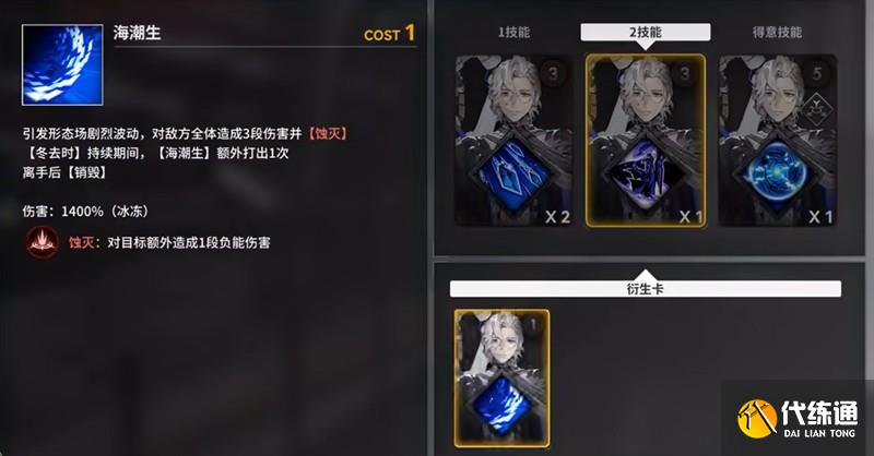 3技能潮海生是伊利亚德的高爆发技能,能引发形态场波动对全体敌人造成3段伤害并附加蚀灭效果。当冬去时技能持续期间使用,还会额外触发离手技能,大幅提升输出效率。