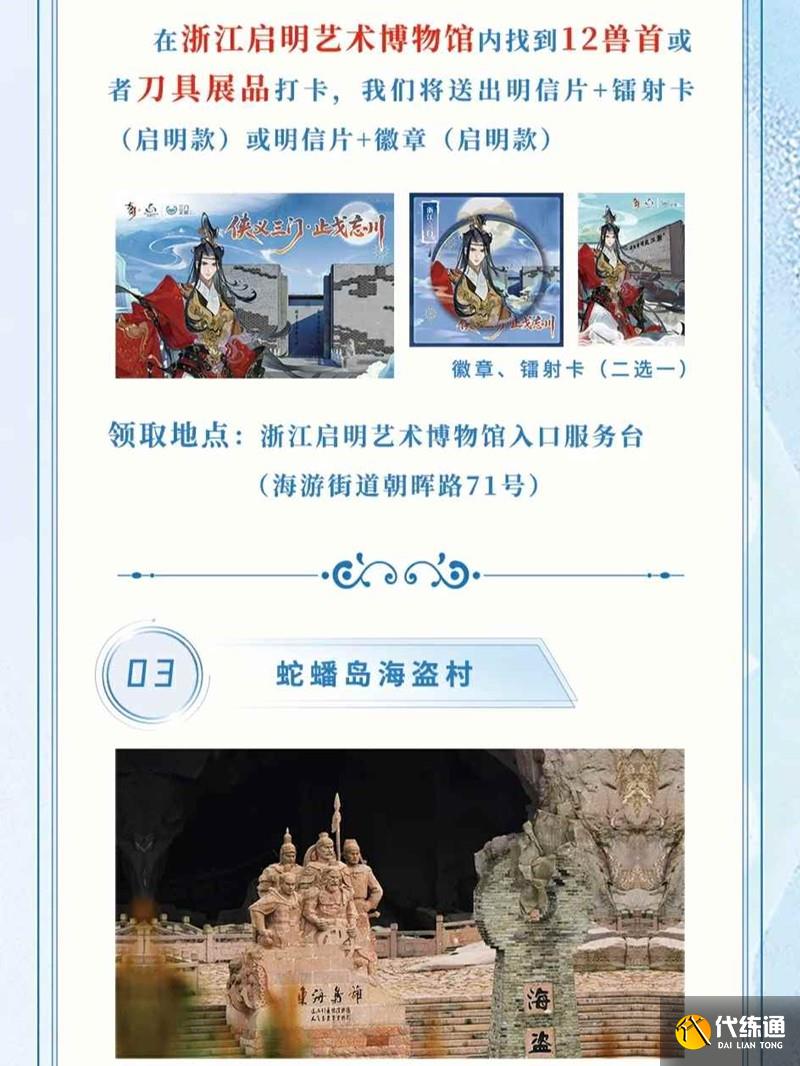 前往上述三个点位并完成打卡任务、就能获取该点位的戚继光联动明信片+镭射卡或戚继光联动明信片+徽章1份。