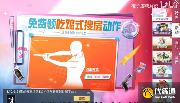 2、然后可以看到有【免费领动作】,玩家只要在3.12-3.21分享活动就可乐意领取该动作了。