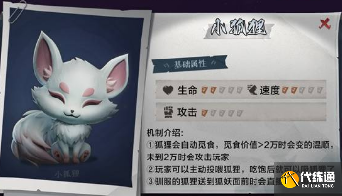 狐狸会自动觅食,当觅食价值超过2万时会变得温顺,如果未达到2万时则会攻击玩家。