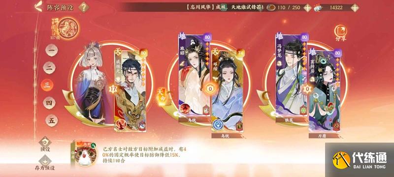3.队友必须穿一套洗好双风华词条的承佑套保证全队存活,我这里给戚继光穿的双风华衣帽鞋,戚继光换成西施婆婆也是可以的。