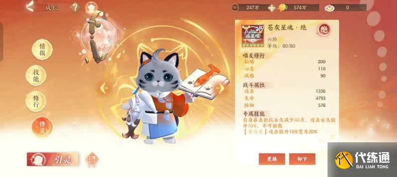 猫词条选择五攻击加成或者四攻击加成一敏捷/一爆伤(根据配速需要),九世灵用苍灰,因为猫技能猫一提供了百分百的暴击率,所以宋应星只需要攻击和爆伤两个属性,对局非洛书的阵容轮子普攻伤害高达2w+。