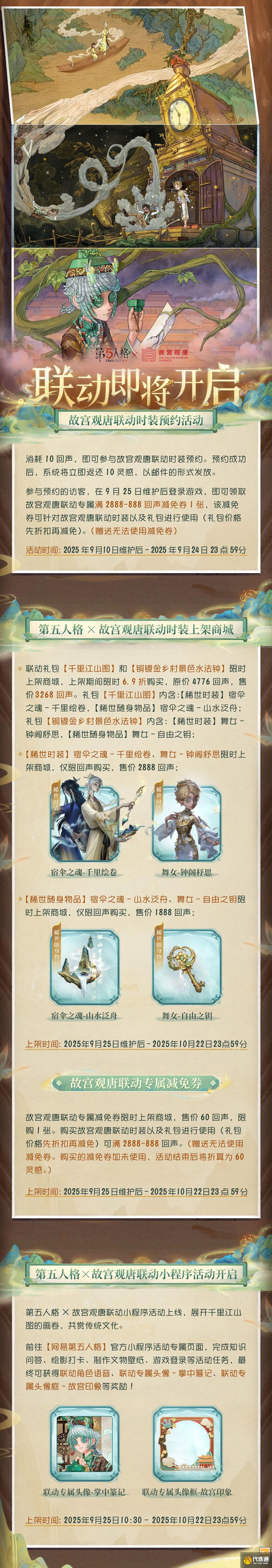 第五人格和故宫观唐联动就要来啦,本次联动有不少的福利活动以及内容,大家知道有哪些吗?下面为大家带来的第五人格故宫观唐联动活动大全,感兴趣的玩家们千万不要错过哦!