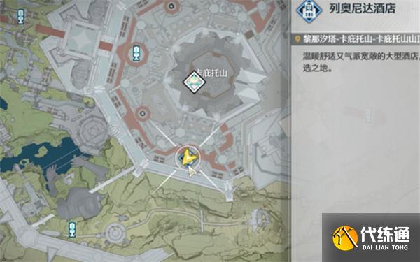 打开地图,先传送到七丘卡必拓山利奥尼达酒店。