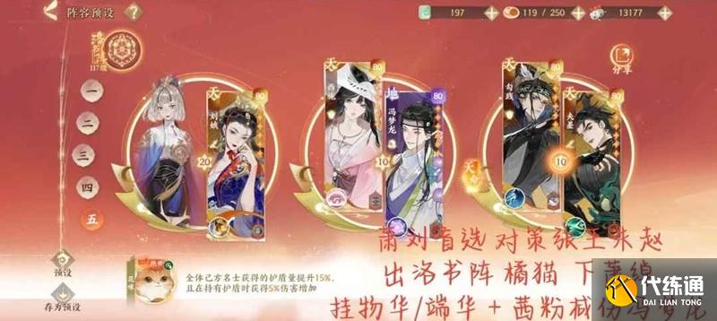 打张王朱赵/曹植,出橘猫换洛书阵,刘娥单挂,萧绰换冯梦龙,对面大概率打不动我们,打得动可以跑了,毕竟是克制我们的阵容。