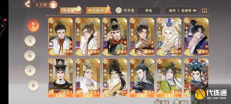 激活增益工具人:戚继光、徐霞客(仅满级,其他未培养)