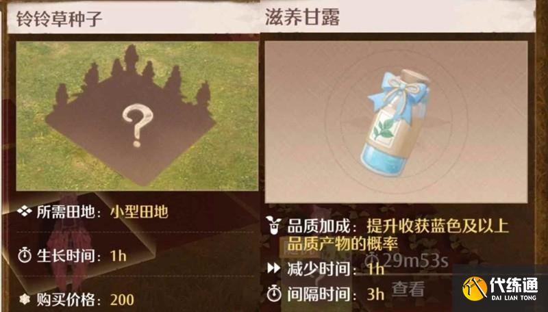 用甘露可以速刷赚钱。铃铃草的成长时间是1小时,甘露是减少1小时生长,可以秒种秒收无cd。但是甘露有100的成本,净利润就会少一些