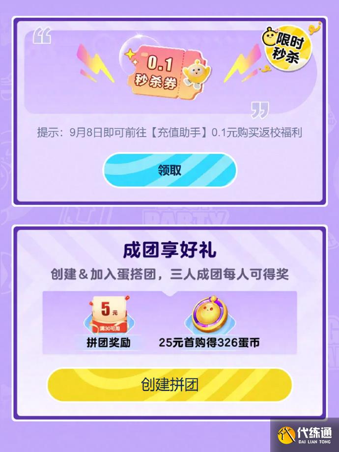 除此之外,蛋仔们还可以组成蛋搭团,满3人即可获得8.3折代金券哦!
