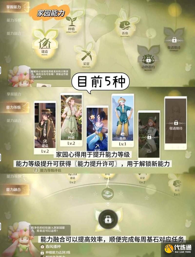 需注意!连续3天刷满心得才能解锁完目前5种能力。连续2天刷满心得可以解锁建造、种植、采星、养鱼4种能力,就足够拿满第1周的基石2000周上限