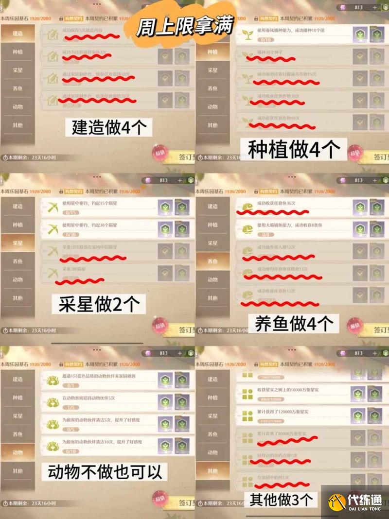 9.6-9.7是最后2天,9.6才解锁家园,要拿满周上限基石,不建议解锁动物能力,比较麻烦,还可能bug,不计入次数。煮啵今天的邀请和清洁就没计入。看p7,解锁除动物外的4种能力,肝一肝可以正好做完17个任务