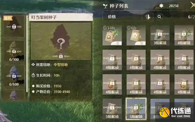 2、叮当果树解锁后,中级田地才算真正有价值,否则只能种出一堆鸡肋作物。