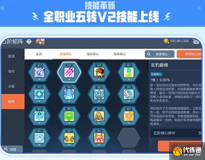 五转V2技能的获取方式与V1技能类似,但需要通过收集“核心碎片”来合成。这些碎片主要来自“神秘力量战场”和“神秘任务”,因此玩家需要投入一定的时间和精力去完成相关活动。核心碎片的获取难度较高,建议玩家尽早开始积累,以免错过最佳时机。一旦收集到足够的碎片,就可以解锁对应的V2技能,从而开启全新的战斗风格。