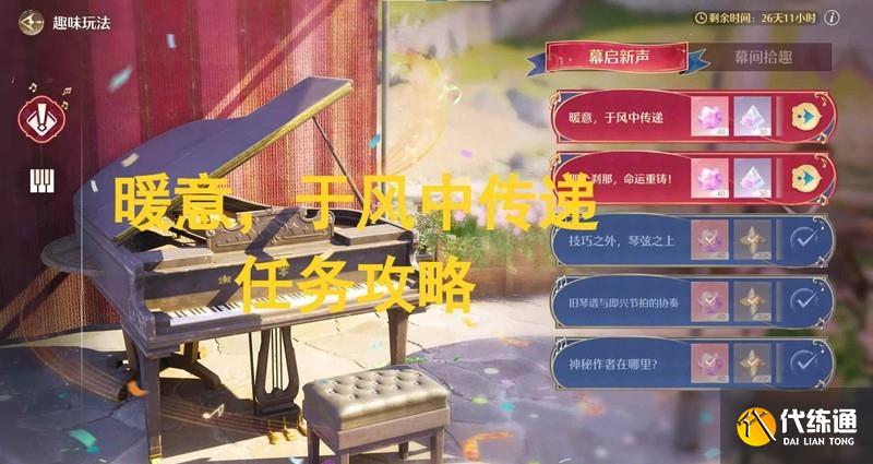 无限暖暖游戏中玩家将操作暖暖,作为一名搭配师与大喵一同踏上新的冒险旅程。玩家可以在奇迹大陆中通过各种各样的方式获得不同风格的精美套装。那么音乐季幕启新声,暖意,于风中传递应该怎么完成呢?小编为你准备了一份攻略,一起来看看吧~