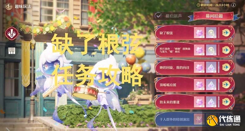 无限暖暖游戏中玩家将操作暖暖,作为一名搭配师与大喵一同踏上新的冒险旅程。玩家可以在奇迹大陆中通过各种各样的方式获得不同风格的精美套装。那么音乐季幕间拾趣,缺了根弦应该怎么完成呢?小编为你准备了一份攻略,一起来看看吧~