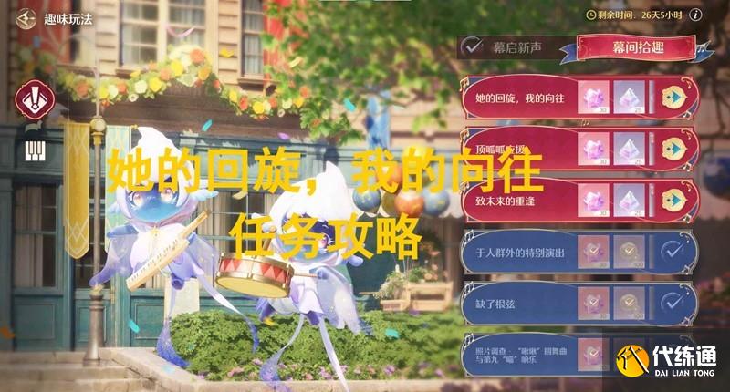 无限暖暖游戏中玩家将操作暖暖,作为一名搭配师与大喵一同踏上新的冒险旅程。玩家可以在奇迹大陆中通过各种各样的方式获得不同风格的精美套装。那么音乐季幕间拾趣,她的回旋,我的向往应该怎么完成呢?小编为你准备了一份攻略,一起来看看吧~
