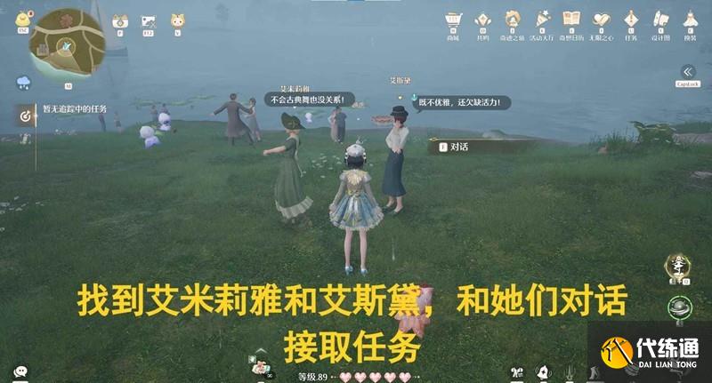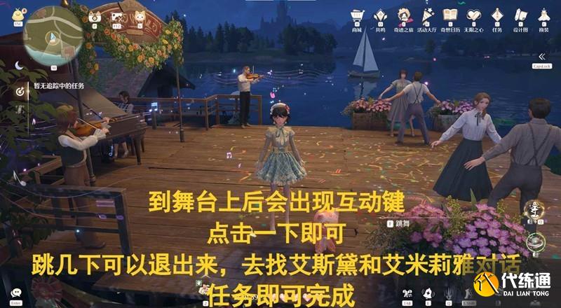 建议选湖畔街区的舞台,到舞台上,点击互动键跳舞,然后退出来,找艾斯黛和艾米莉雅对话;