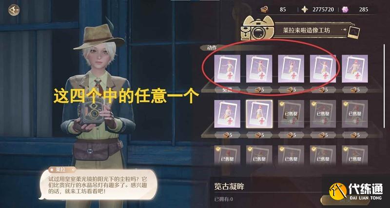 接着去大许愿树广场找到莱拉,购买 裙漪生花、循光曳步、跃步漫舞、踮足轻舞四种舞蹈中的任意一个;
