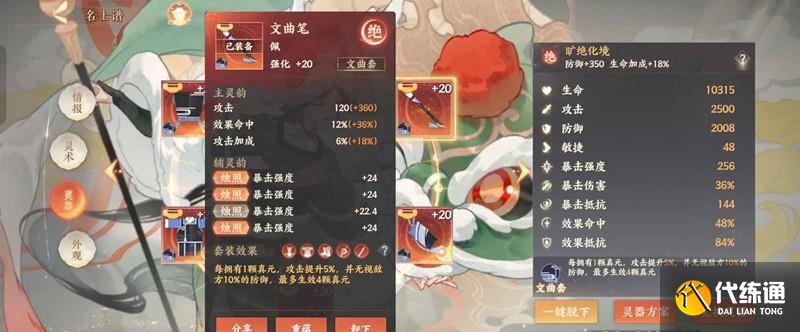 其中衣帽鞋配都洗双风华,武器不洗风华全部洗暴强,因为梁花对暴击强度的要求比较高,不暴击的话基本是没伤害的。