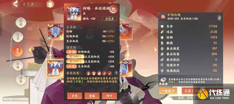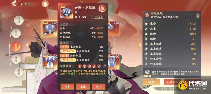 生命加成是幽墟衣帽收益最大的属性(离火李白除外,因为有天命加血,所以拉爆抗就够了)