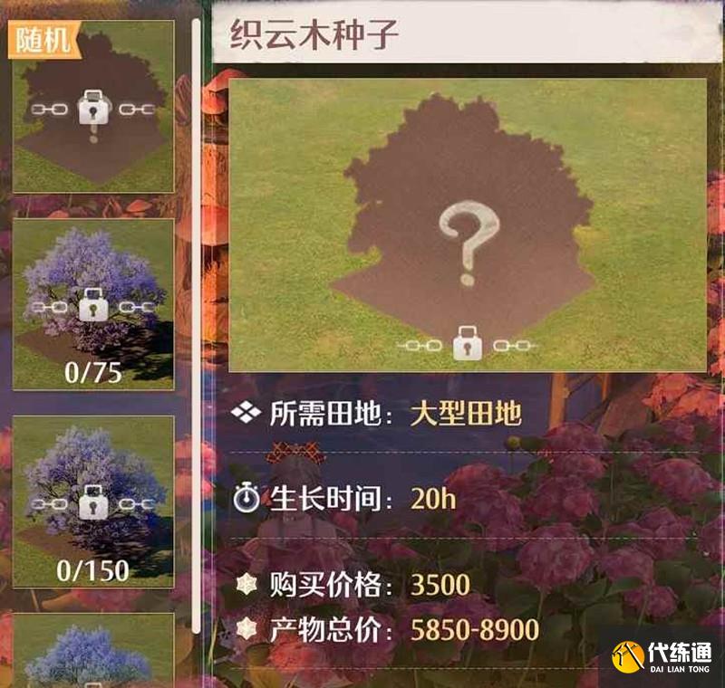 目标:打算一直点种植,把9级大树-织云木点出来,省心护肝;
