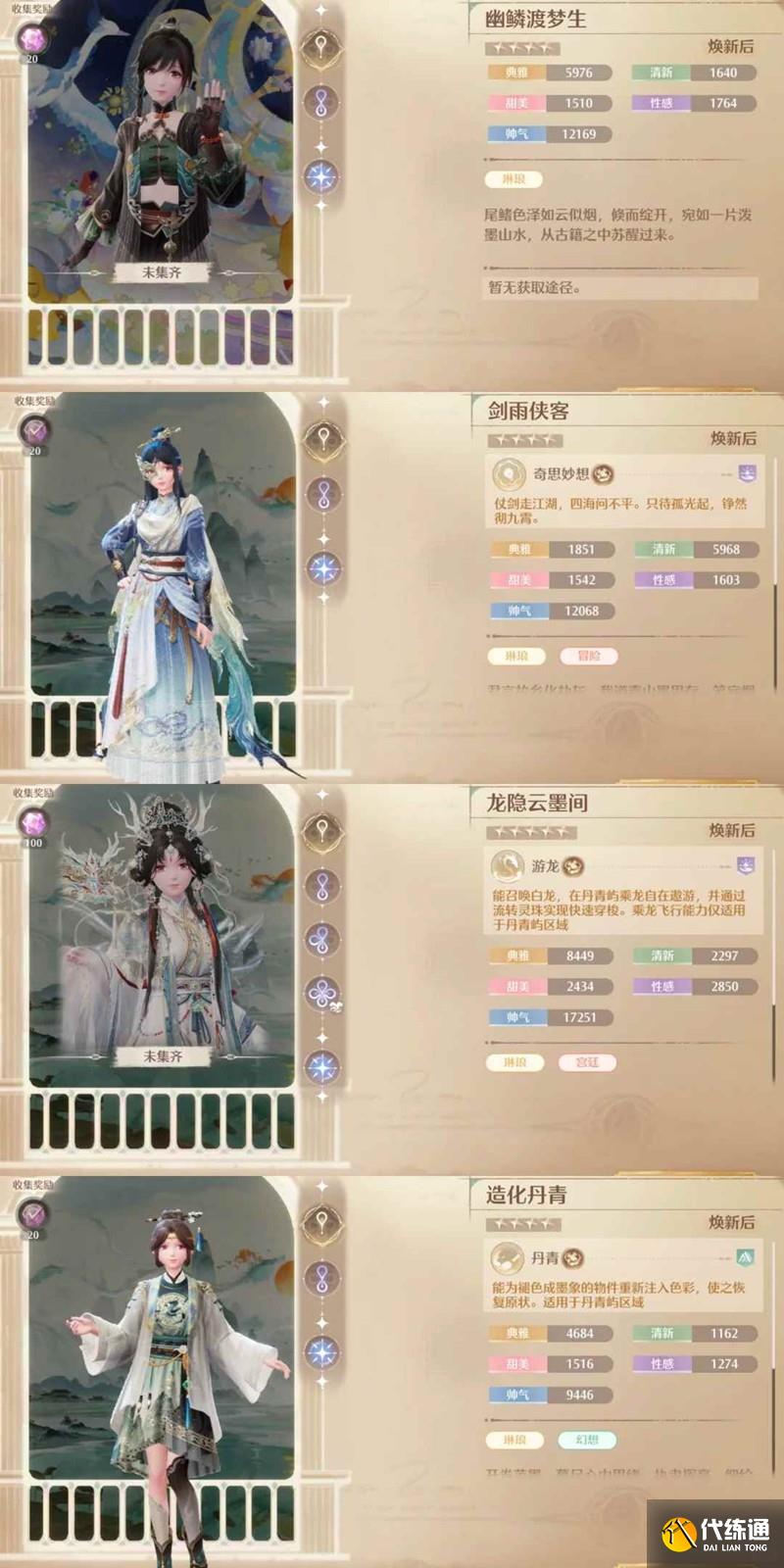 符合条件的套装有【龙隐云墨间】【咏叙的旧梦】【绯夜狂想录】【淑雅格调】【鎏金旧事】【绿原交响诗】