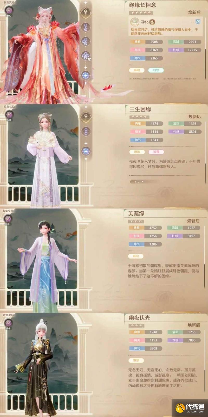 符合条件的套装有【雪境长歌】【晶莹诗集】【即兴野餐】【熠熠舞曲】【渡我莲心】【流金的根芽】【轻盈泡泡】【别离花客】