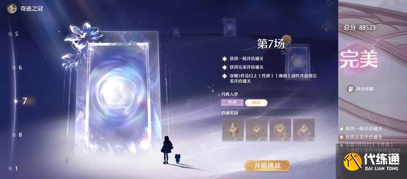 3、第七关三星要求5件及以上【性感】【琳琅】,个人实测最低完美线88523。