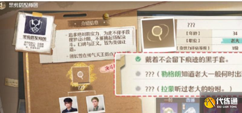 在搭配师团界面中,除了搭配示例外,还能查看当前势力的构成成员及其背景信息。每位搭配师都有独立的资料页面,点击即可查看详情。对于尚未解锁的搭配师或挑战任务,系统会明确提示线索获取方式。玩家需通过探索世界、完成任务或收集特定物品来凑齐线索,线索集齐后可开启挑战环节,并通过点击追踪快速定位目标地点。