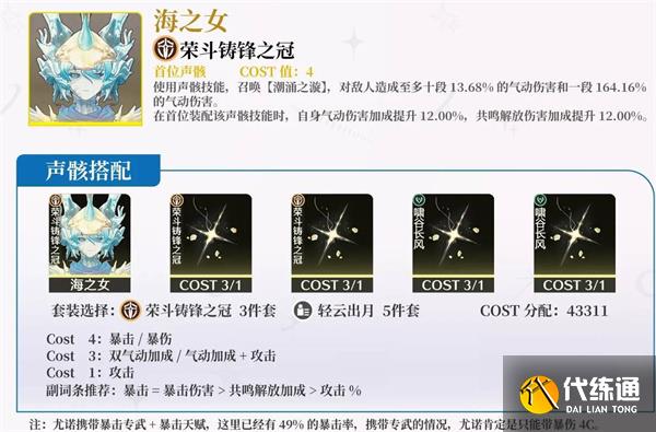 尤诺专武+天赋自带49%暴击率,主属性优先选择暴伤