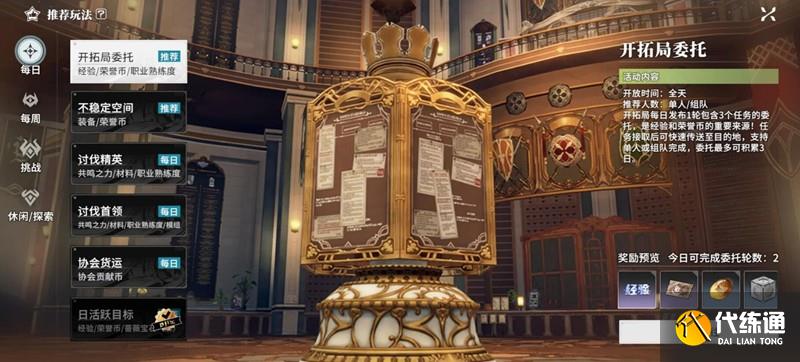 星痕共鸣每日委托任务可在主城开拓局传送点处接取,每天系统会刷新一轮包含三项任务的委托内容。玩家只需前往开拓局中央的建筑物进行交互,即可领取当天的任务。这些任务类型多样,包括进入指定副本击败敌人、在地图中采集特定物品、完成小游戏挑战以及运送货物等。每项任务难度适中,适合单人或组队进行,是星痕共鸣中稳定获取经验与荣誉币的重要途径。