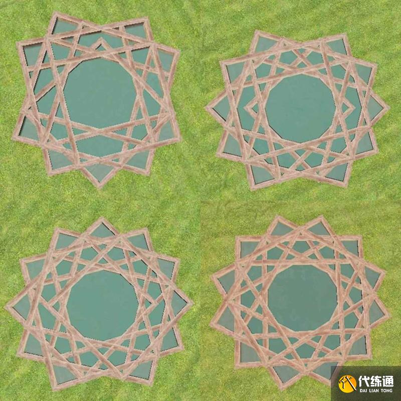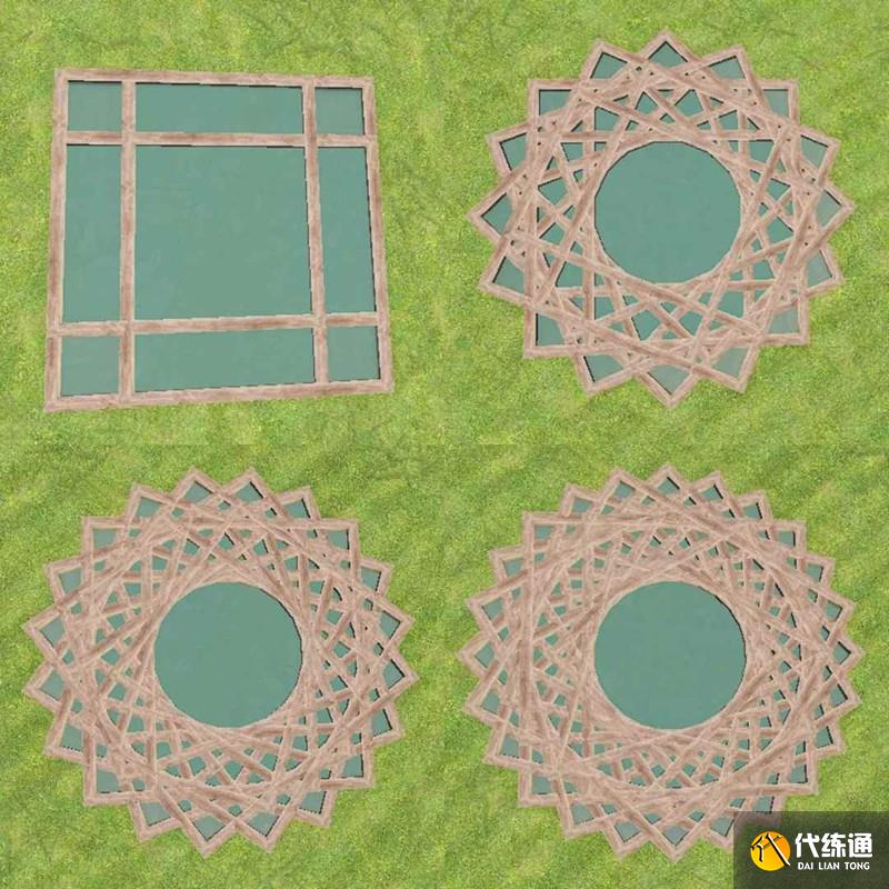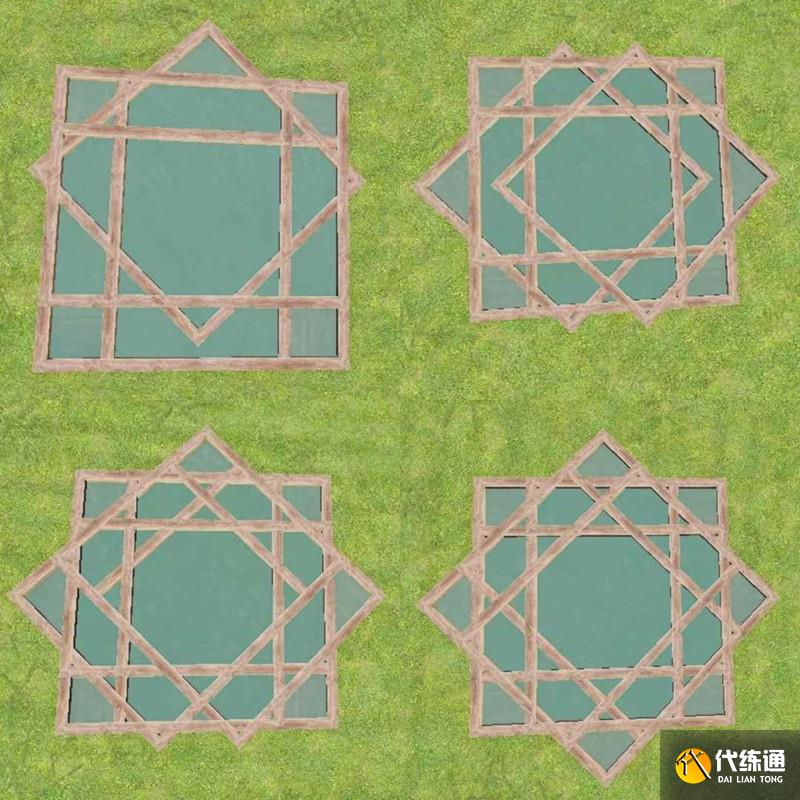 鱼塘是最开始给4块,后面一块一块给,直接原地叠放不太好喂鱼,又正好是四块正方形,所以想出来按四方形叠放,后续也都是在四方形基础上加的。这样子叠放出来外围的每一个角刚好属于不同的鱼塘,放鱼喂鱼都比较方便