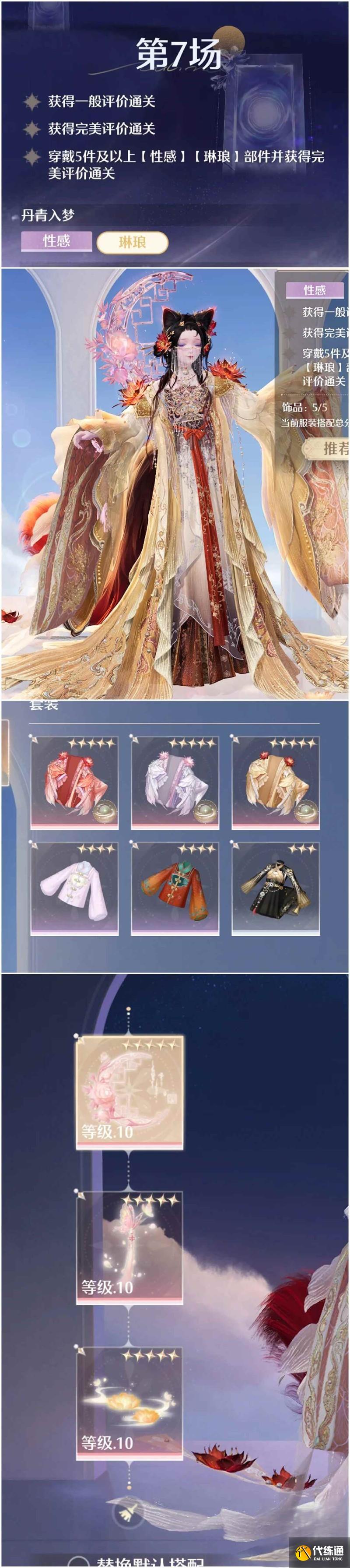 第七关 性感 琳琅 本关需要穿五件带有【性感】【琳琅】标签的衣服才能完美通关,小宝们是不是觉得很眼熟,是的,这一关的要求上上期出现过,完整套装推荐猫猫套,1.8免活三生因缘 1.8累充三星已尝试,单穿不能完美,所以尽量穿带有关卡要求的高星等的衣服通关