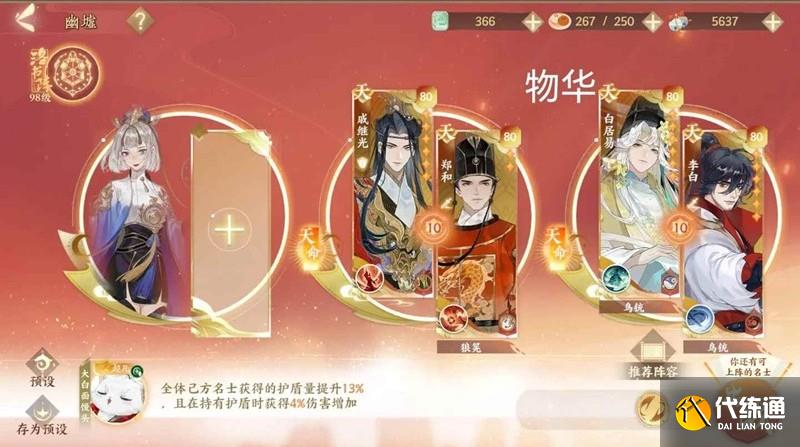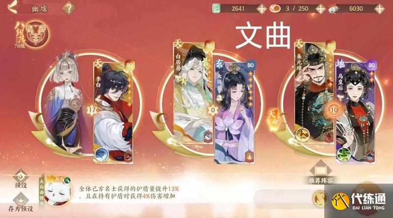 文曲,从群攻里面凑了一个单体队……没用双白是因为双白天命在这里太内鬼了。大周后基本是必带不然十回合结束打不死。