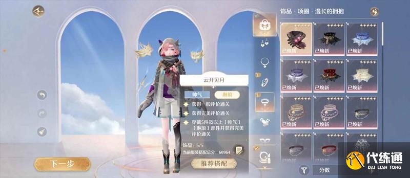 第七场性感琳琅,满星5件性感琳琅。有猫套用猫套,没有的话5星耳环前尘妄(分不够就焕新这个)+4件0级三四星性感琳琅饰品+星之海/心湖涟漪混搭(有海浪/蝴蝶自行贵替)即可满星,分数线9.1w左右