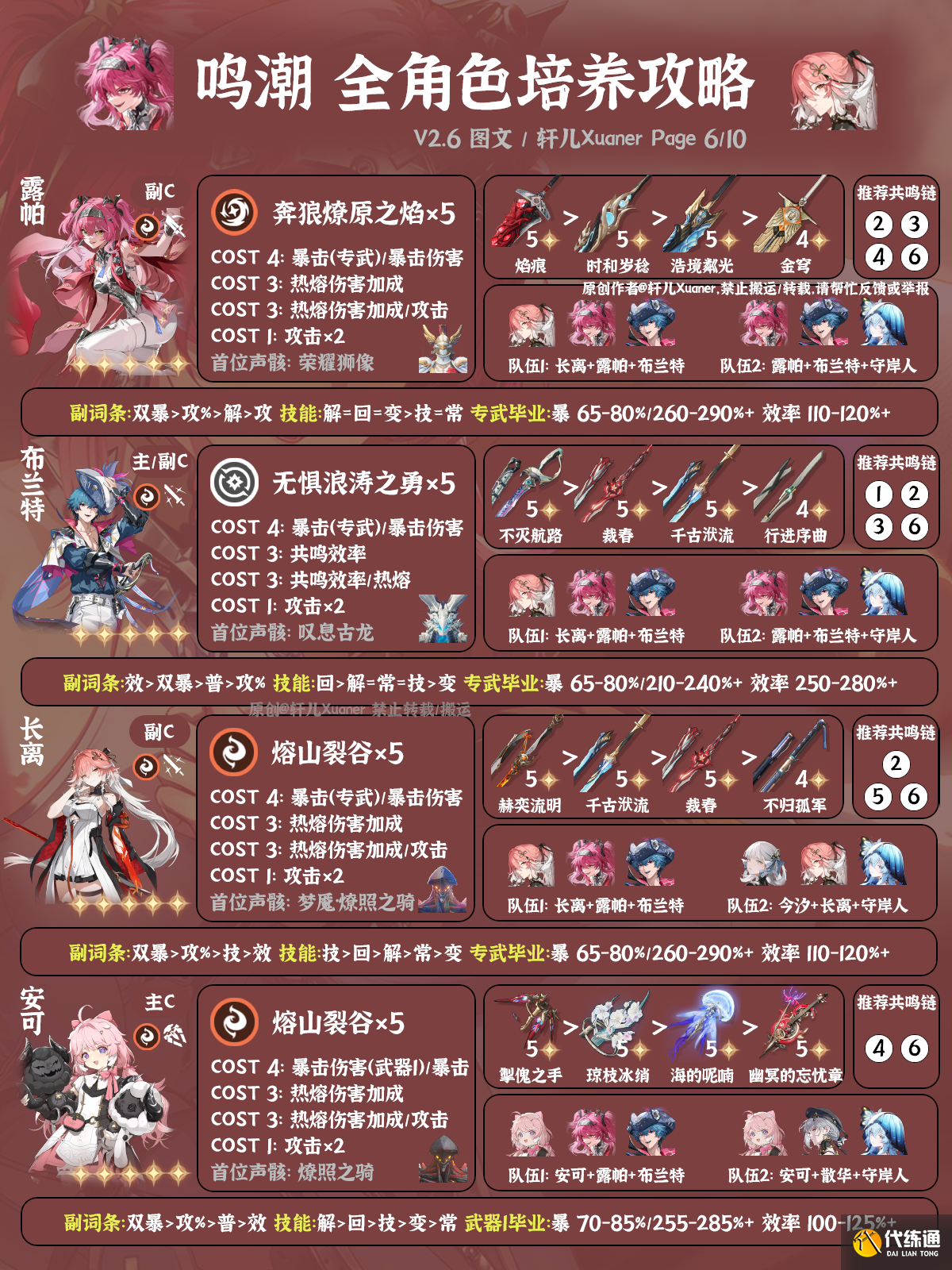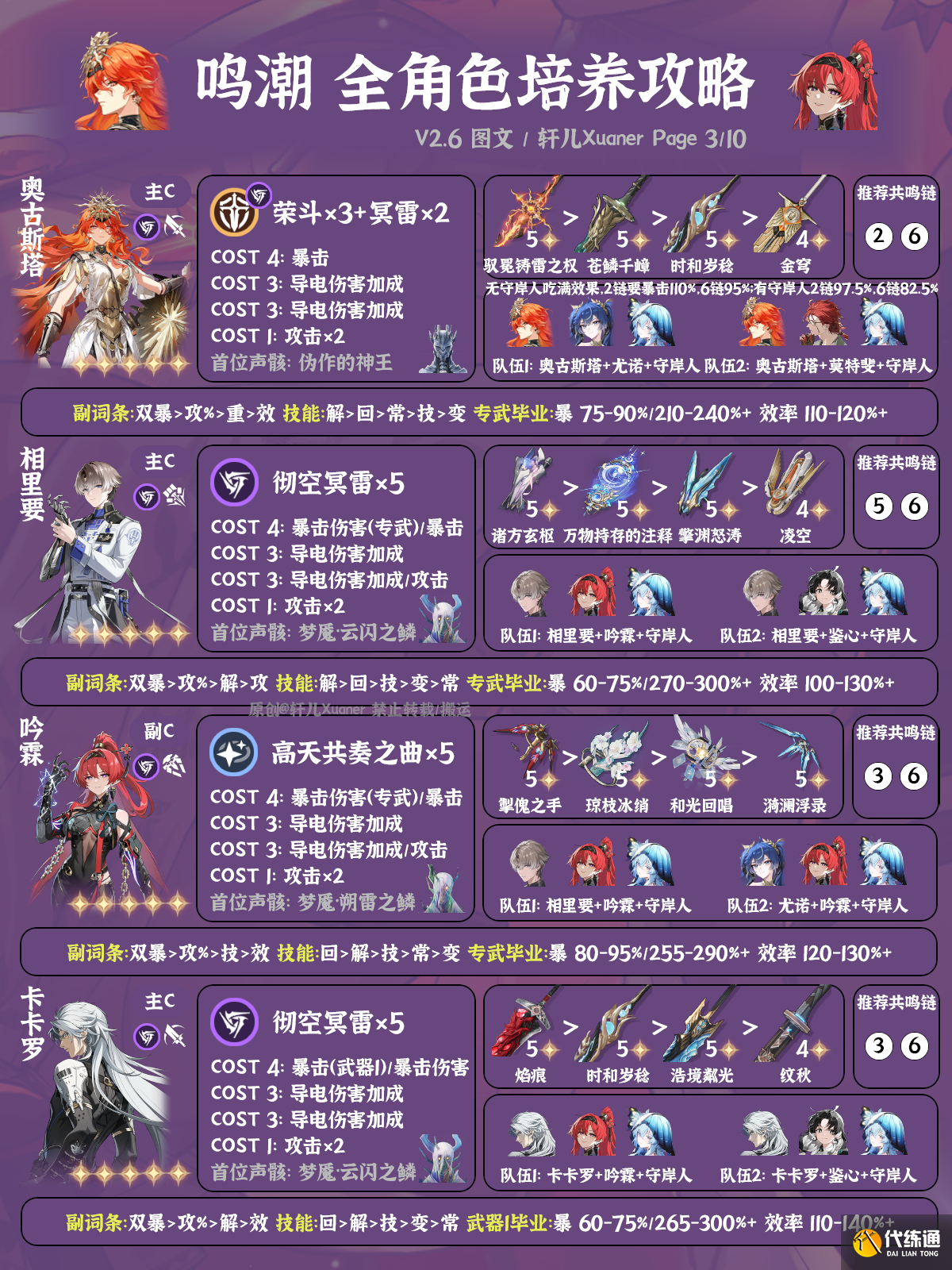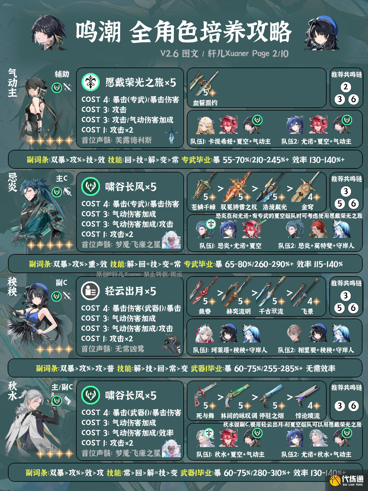 鸣潮2.6版本全角色养成攻略 鸣潮2.6版本全角色怎么养成