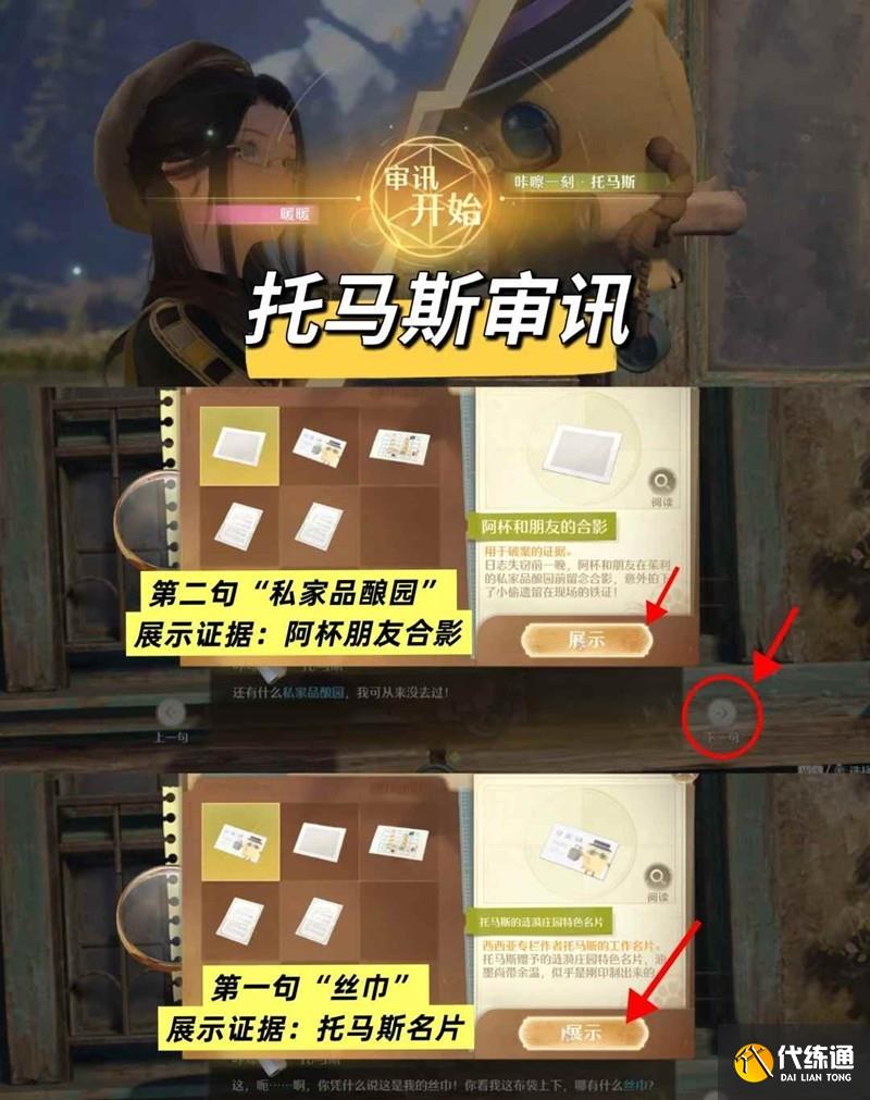 【审讯举证】注意右下角【下一句】可以调整