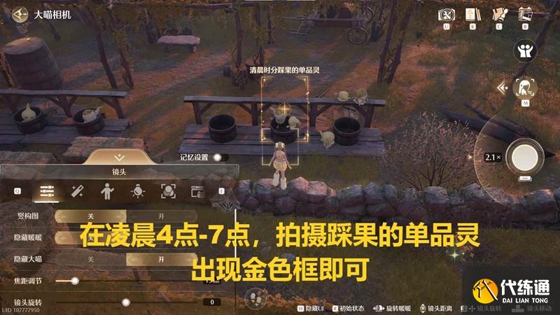 接着,在凌晨4点-7点拍摄踩桶的单品灵,出现金色框框即可;