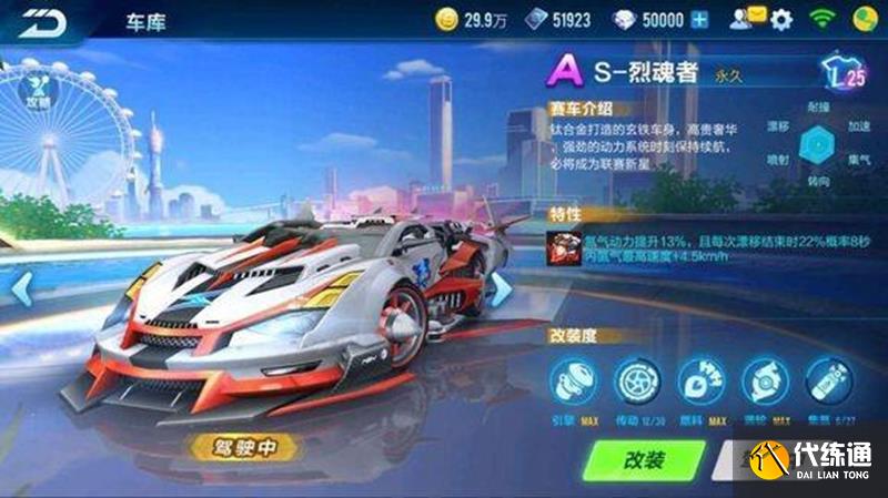 排在第1位的是S-猎魂者。这是最新推出的五喷A车,让众多玩家感到兴奋。S猎魂者的六维图表现突出,各项属性都处于顶尖水平,特别是喷射属性非常强势。它拥有两个特性:13%氮气动力整体提升,以及每次漂移结束后有23%几率获得强化氮气,大幅提升行驶速度。现代感十足的外观搭配逆天性能,让它稳坐A车排行榜首。