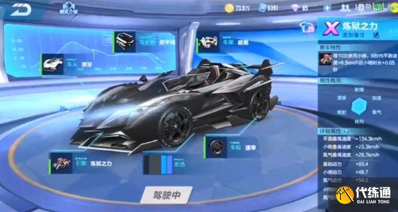 排在第2位的是狱火哮天。作为狗年限定A车,这辆车的性能十分出色,CWW喷速度可达306.3,改装后也能保持在305.8。虽然转向性能比黑夜传说稍弱,但明显强于黑闪猎影。由于车身较重,耐撞性能相当不错,驾驶起来非常稳定。新版本更新后耐撞属性有所削弱,但熟悉操作后依然能发挥出顶尖性能,因此成为很多主播刷纪录的常用车辆。可惜这辆限定A车已经绝版。